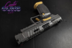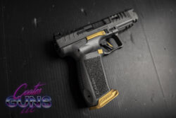 The Canik SFx Rival has a total length of 8.1”, a height of 5.7”, a 1.41” width, a 5” barrel, and an overall weight of 29.5 oz. With these specifications the Canik SFx Rival can compete in IDPA, IPSC, and USPSA without restrictions. The Canik Rival is available in Canik Rival Grey with Cerakoted gold accents and in an all-black configuration called the Canik SFx Rival Dark Side. With adjustable fiber optic sights, a lightened 90° diamond cut aluminum flat trigger, reversible magazine releases and sizes, ambidextrous slide release, aggressively serrated and ported slide, 1913 Picatinny rail, external mag-well, 3 grip back strap sizes, double undercut trigger guard, ergonomically redesigned beavertail, aggressive grip texturing, and a completely modular setup, the SFx Rival is ready to win right out of the box!