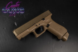 The 19X comes in the coyote color with the first-ever factory colored slide, finished with a nPVD slide coating to prevent corrosion. Additional features include the GLOCK Marksman Barrel (GMB), no finger grooves, Glock Night Sights, ambidextrous slide stop levers and lanyard loop. Included with the pistol is a standard 17-round magazine, two 17+2-round magazines and coyote-colored pistol case.