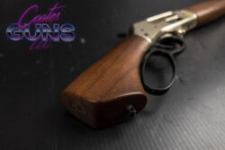 It’s fun, for sure, but it also has more practicality than meets the eye. The Axe has the same 5-round capacity of 2 ½” shells as its larger Lever Action .410 Shotgun counterparts, and the addition of a loading gate means that you can keep that capacity topped off at all times without needing to remove a tube magazine. Another practical advantage is its size. With a barrel length of just under 16” and an overall length of just over 26” the Axe can be stored in far more places than your average shotgun. The barrel is topped off with a brass bead front sight and the muzzle end is internally threaded for invector style chokes. A full choke is included right out of the box, and additional chokes are available on HenryPride.com. The “axe handle” pistol grip gives the firearm its name and is engraved on the bottom with the iconic Henry Cowboy logo for that unmistakable touch of Henry class. Speaking of Henry class, the Axe .410 is available in 2 iconic finishes – hardened brass and matte blued steel.