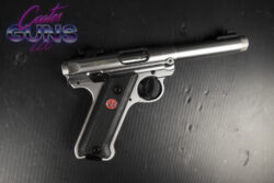 The Mark IV features a simple, one-button takedown for quick and easy field-stripping and proper chamber-to-muzzle cleaning. Cold hammer-forged barrel results in ultra-precise rifling that provides exceptional accuracy and longevity. Internal cylindrical bolt construction ensures permanent sight-to-barrel alignment and higher accuracy potential than conventional moving-slide designs. Contoured ejection port and easy-to-grasp bolt ears allow for durable and reliable operation round after round. Accurate sighting system features a drilled and tapped receiver for Weaver- or Picatinny-style rail for easy mounting of optics. Ambidextrous manual safety can be converted to left-side only with included washer. Features a conveniently located push-button magazine release on the left side of the frame. Pressing a button in the back of the frame allows the barrel-receiver assembly to tilt up and off the grip frame without the use of tools.